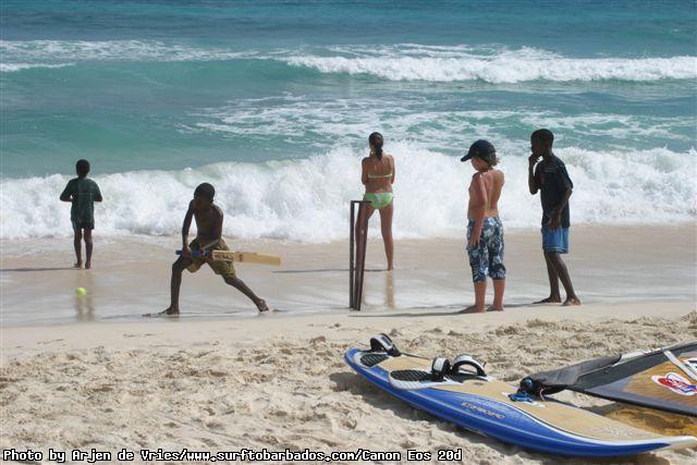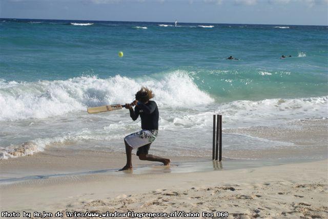 Windsurfing, kitesurfing, surfing, tow in surfing, beach cricket, conch shell blow competition & pricegiving. Action!